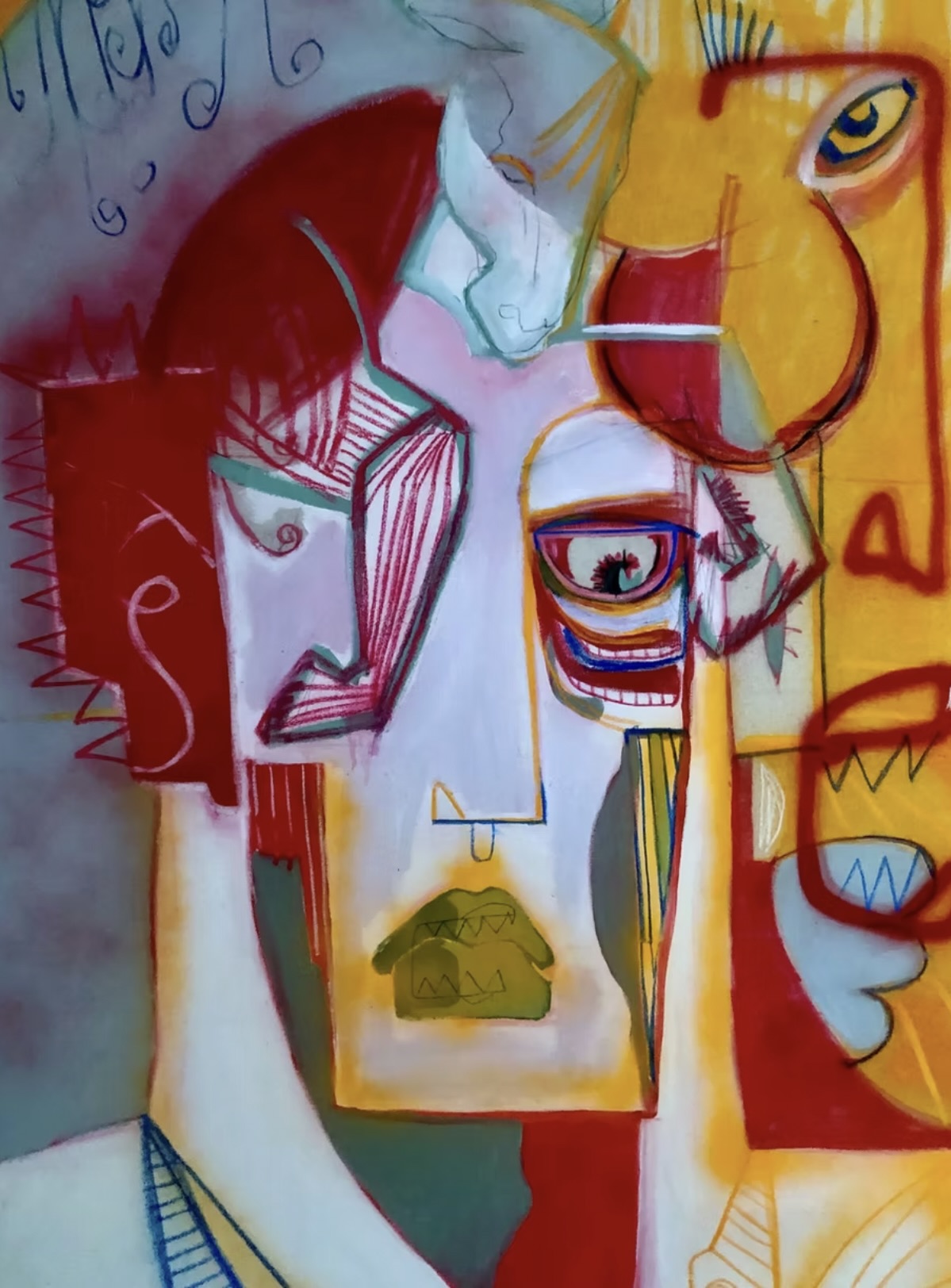 • Acrylic, soft pastel and oil pastel on canvas